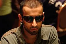 Both Wilburn and Loef had celebrity to contend with as well, as at the opposite their end of the table sat Scotty Nguyen. Nguyen, decked out in his usual casino-plus-bling attire, spent as much time watching the action at neighboring tables and making frequent visits to his self-described "better half" as he did in his own seat. That better half, his agent/manager/girlfriend Julie Ratcliff, had scored her own prime vantage point to Nguyen's play, obtaining a seat inside the ESPN studio area when the draw sent Nguyen to the center part of the room shortly after the dinner break. And when a $150,000+ pot built up at the table to Nguyen's side, he was right there to decipher the commotion, before sliding a knee into his own seat to check his cards on the following hand. Hand quickly mucked, he was on the prowl again.