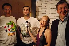 Liv Boeree made the last few hands interesting for her tablemates, finding herself crippled, then tripling up, then busting out within the last five hands of the day. In the first hand she called Vladislav Bakalov's all-in with A♣K♦ on a flop of 2♠4♠10♦. Bakalov tabled pocket jacks, which held up to put a huge dent in Boeree's stack. Boeree then tripled up when her pocket eights flopped a set against the pocket tens of Stefan Duxner and the pocket kings of Franciscus Dekkers. On her final hand, she moved all in preflop again, this time with A-K, and found one caller with A-6. The board ran out 4-4-5-6-2, and Boeree was done as Day 1 ground to a halt. As Boeree headed for the exit, she was joined by John Duthie, who busted on the very last hand of the night.