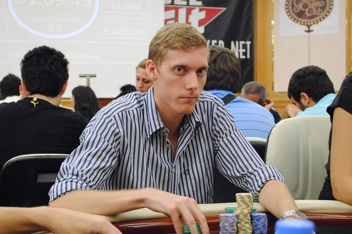 Loeser started the day with 91,550 and steadily built up his stack throughout the day. In a hand against November Niner John Dolan, Loeser raised to 5,200 from middle position and Dolan called out of the small blind. The flop came down K♦Q♥5♦ and both players checked to see the 3♠ hit the turn. Dolan bet 6,500 and was called by Loeser, landing the 10♦ on the river. Dolan fired 12,600 into the pot and Loeser raised, making it 34,600. Dolan gave it up and Loeser took the pot. It was plays like this that slowly increased his stack and has put him in a great spot with just a few tables remaining.