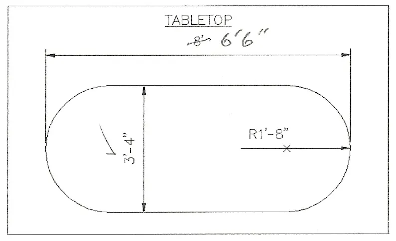 Here are a few diagrams I used to illustrate the dimensions. The first three show my changes to accommodate the shorter table.