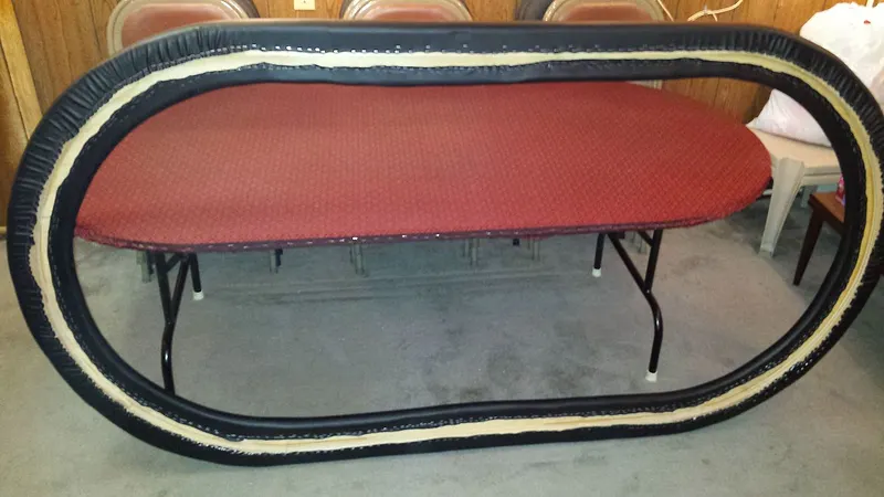 Now that you have the playing surface and the padded rail finished, it is time to put them together, and your own custom poker table is done.