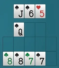 Eventually, after looking at the board, I did decide to place my 5♥ in the middle, even though my sole ace in the middle was already covering my sole king on top. I thought I could also make two smaller pair in the middle, or perhaps even catch a jack in the back with an ace in the middle!