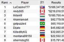 "shermdog50" Eliminated in 9th Place ($15,791)