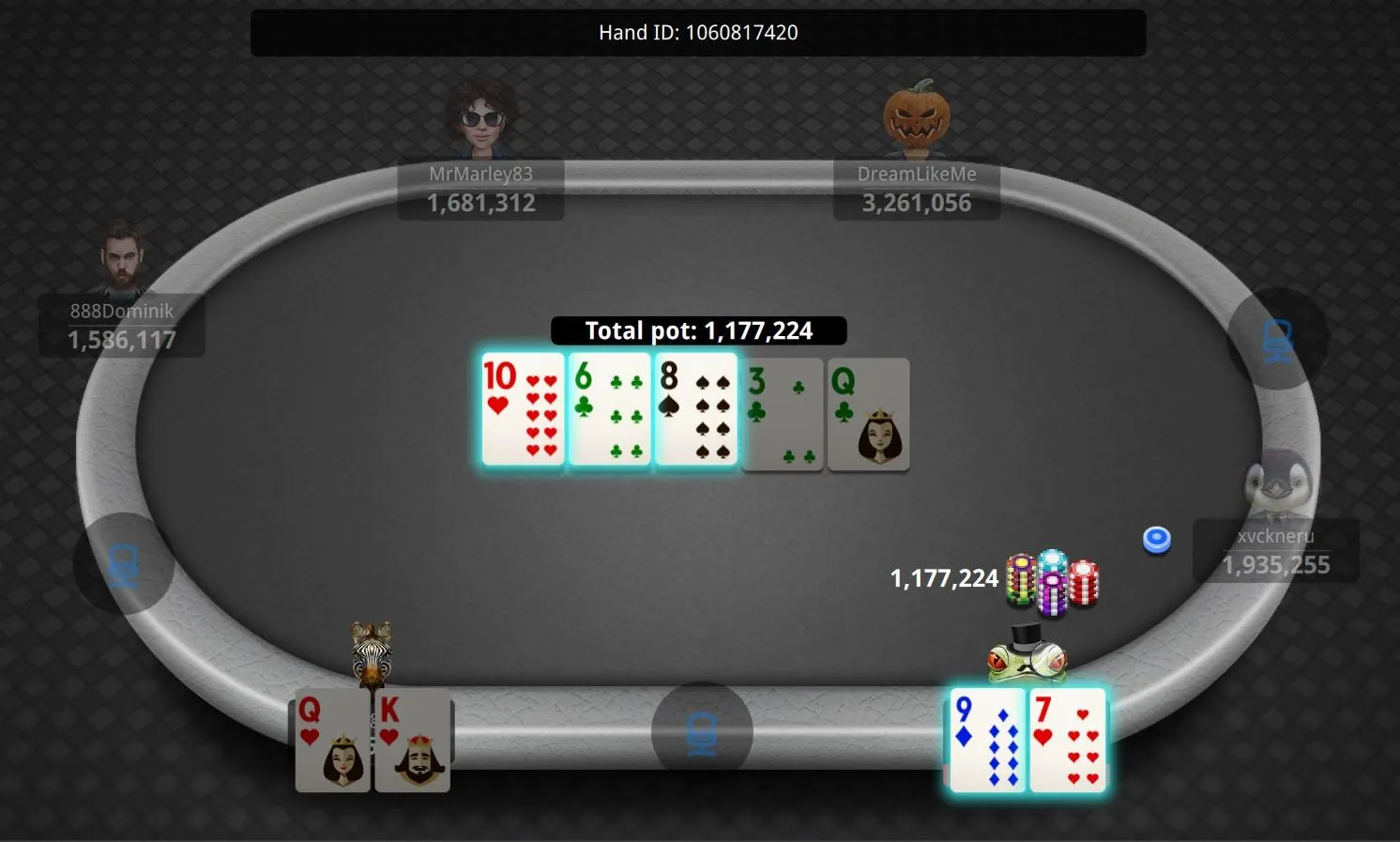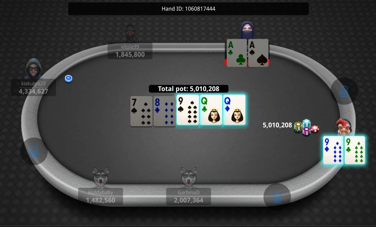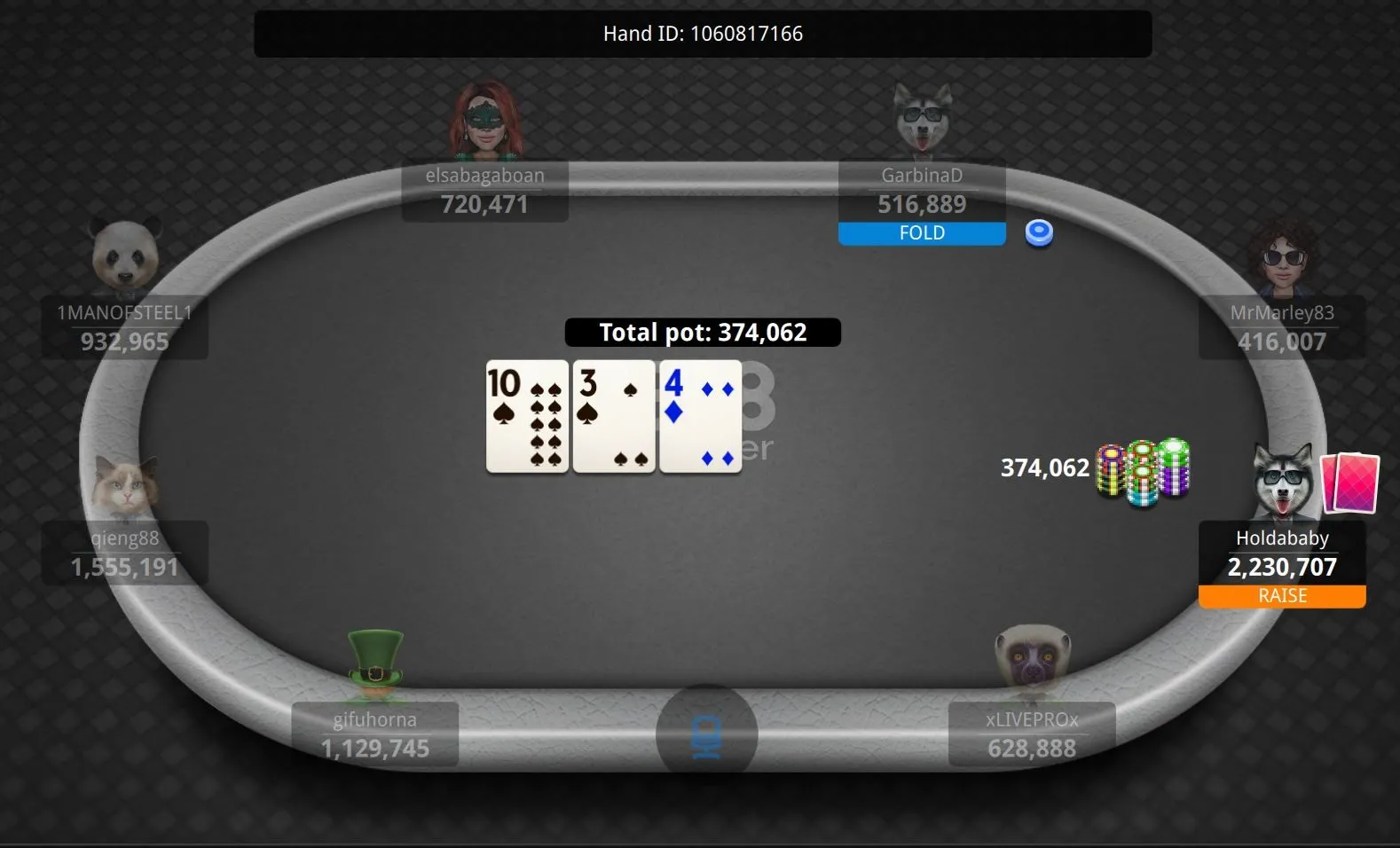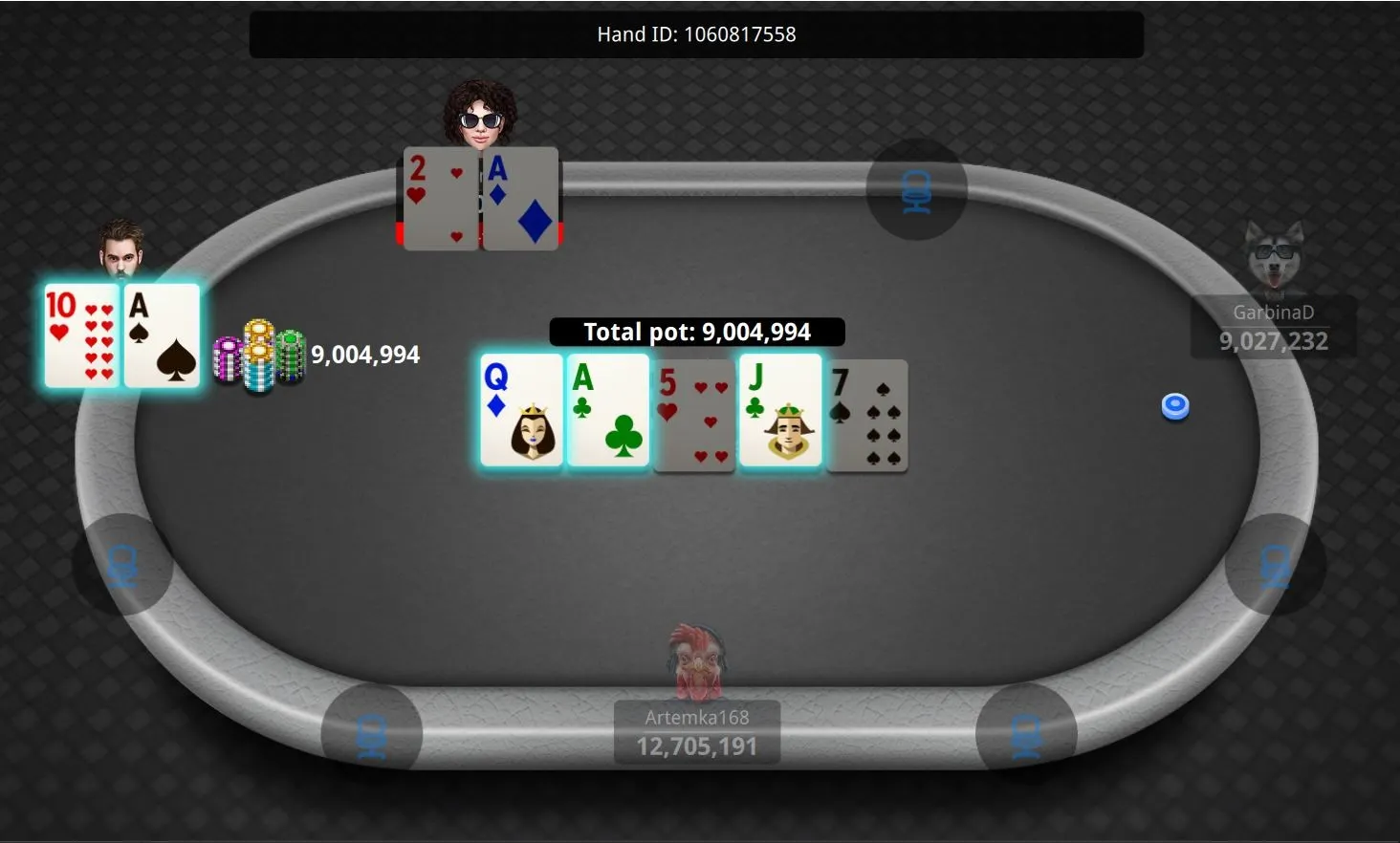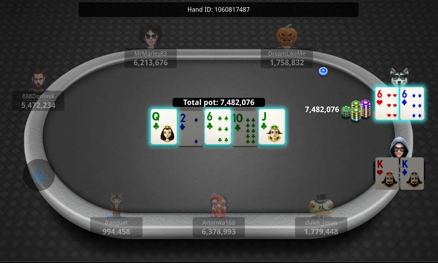 "GarbinaD" Eliminated in 2nd Place ($112,609)"MrMarley83" Eliminated in 4th Place ($60,000)"DreamLikeMe" Eliminated in 6th Place ($30,000)"GarbinaD" Gets There for a Double"Artemka168" Cracks Aces"xvckneru" Out in 13th Place ($5,000)"dulek_jason" Flops It to Stay Alive"qieng88" Can't Hold"heroes333" Doubles"Holdababy" Gets it on Flop"HarristheCat" DoublesGonzalez Loses Race"QuietMike" Doubles"AsaNisse4" Grabs a Stack"QuietMike" Gets a Double"AsaNisse4" Grabs a StackEarly Action