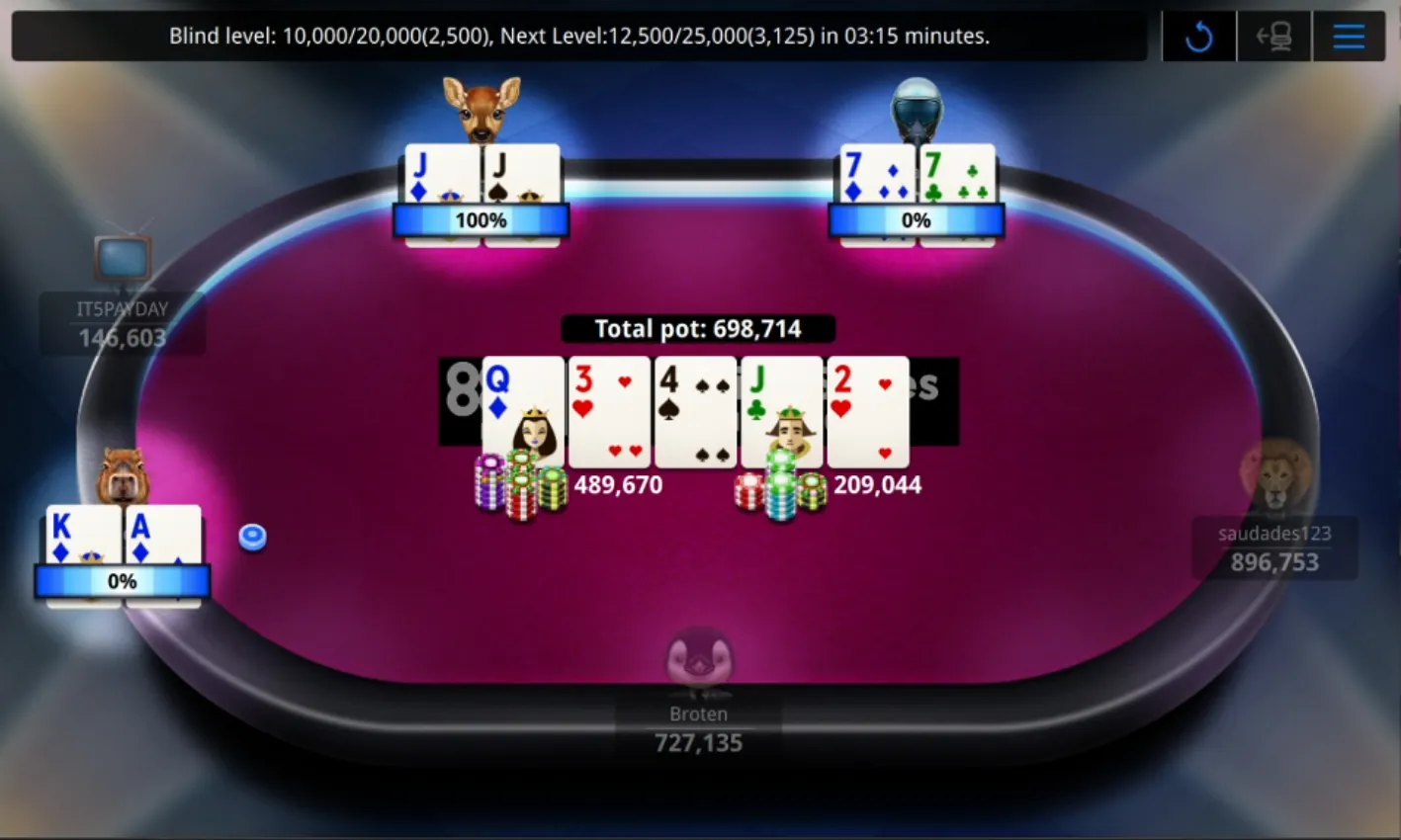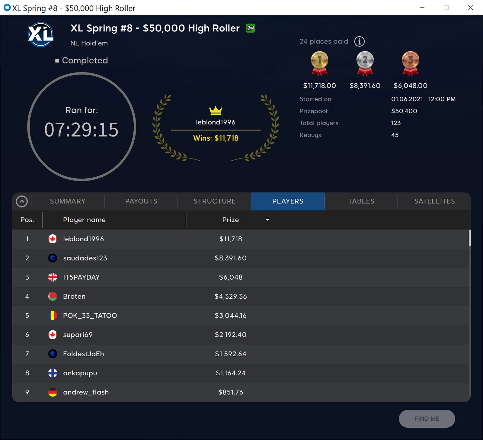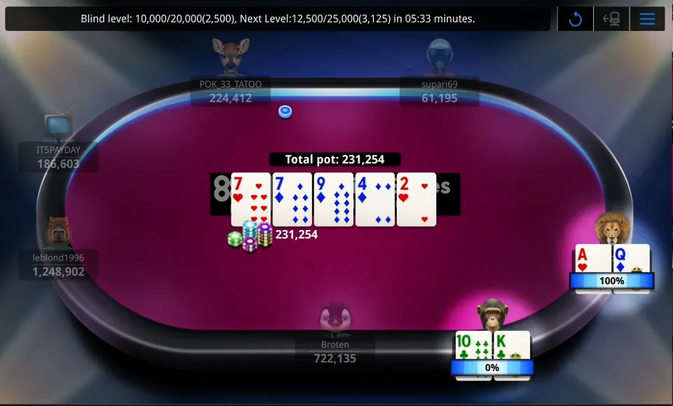 Orleans Poker RoomOrleans Poker RoomRed Rock Poker RoomRed Rock Poker RoomSouth Point Poker RoomSouth Point Poker RoomMGM Poker RoomAria Poker RoomAria Poker RoomMGM Poker RoomBellagio Poker RoomBellagio Poker RoomBellagio Poker RoomWynn Poker RoomSahara Poker RoomWynn Poker RoomBally's Poker RoomVenetian Poker RoomWestgate Poker RoomBally's Poker RoomGolden Nugget Poker RoomWestgate Poker RoomGolden Nugget Poker Room"leblond1996" Wins $11,718 for First in XL Spring #8"saudades123" Eliminated in 2nd Place ($8,392)"Broten" Eliminated in 4th Place ($4,329)"POK_33_TATOO" Eliminated in 5th Place ($3,044)"supari69" Eliminated in 6th Place ($2,192)"FoldestJaEh" Eliminated in 7th Place ($1,593)"andrew_flash" Eliminated in 9th Place ($852); "ankapupu" Eliminated in 8th Place ($1,164)"leblond1996" Gets There"yakawin123" Races to DoubleStream Underway"plush0292" Wins the Race"Gat0rbl00d" Gets There in a Cooler"ankapupu" Raises Big from Button"Romano18" Gets There on River"Romano18" Chips UpLet's Play Poker