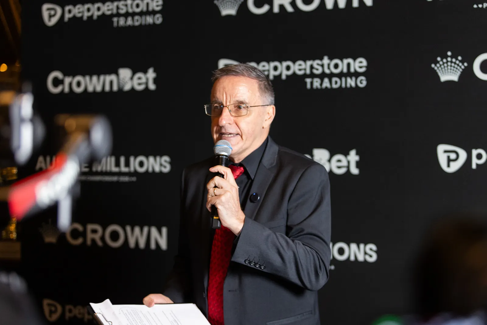 Australia’s poker royal family was also well represented, with Joe and Jeanie Hachem joined by Tony, James and Antonia Hachem, alongside Street Side Medics CEO Nic Brown, who later joined Crown executives David Tsai and Ed Domingo for the closing donation presentation.