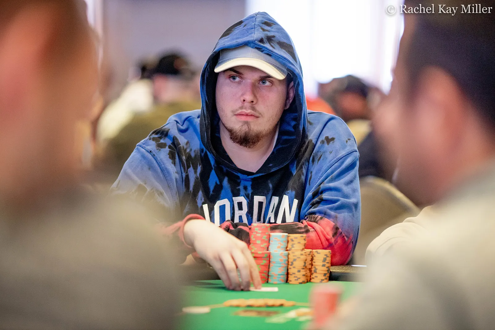 as he surrendered a portion of his stack to his left.