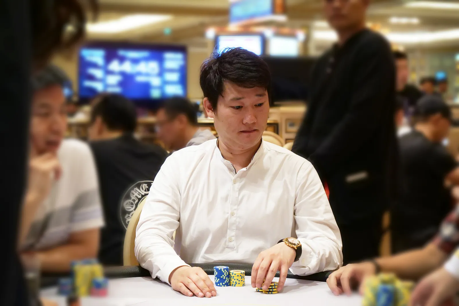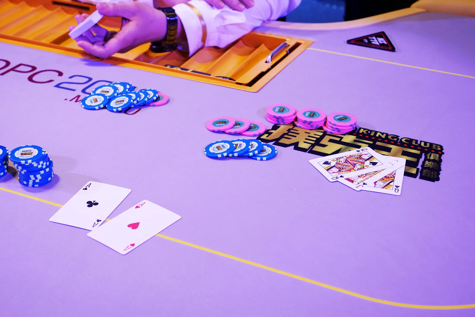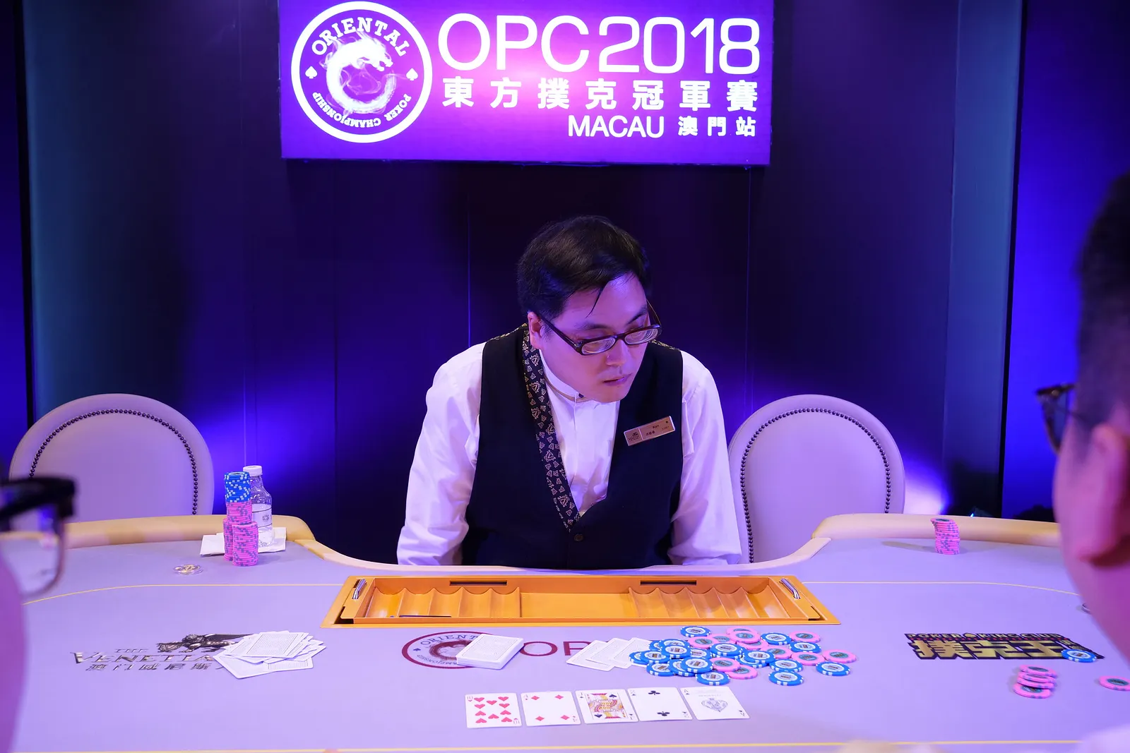 Inaugural OPC Champion Xiaobo Zhou (left) and Poker Kong Club President Winfred Yu (right)Ivan Leow heads-up for the OPC titleXiaobo ZhouChang Bo FengWayne ZhangAustin WaltonIvan LeowOPC Final Table Action 2OPC Final Table Action 1Sang HwangXiaobo ZhouWayne ZhangSang HwangAustin WaltonChang Bo FengYuefeng PanYazhou ChenIvan Leow Wayne ZhangSang HwangAustin WaltonOPC Final Table ActionWing Kei ChanChang Bo Feng, Duan Shan JunXiaobo ZhouDong Liang ChengYuefeng PanIvan LeowYazhou ChenOPC Final Table DealerThe OPC Main Event Final EightOPC MisdealHe Yu JiaoAlbert Paik He Yu JiaoHe Yu JiaoHe Yu JiaoJiang Ling YunTerence WuIvan LeowIvan LeowWayne Wei Yi ZhangWayne Wei Yi Zhang Yue Feng Pan Shun Yan FengPark Sung ChangPaul Ming Juen Teoh Duan Shan Jun Kin Fai ChungXu Ya HuiXu Ya HuiYazhou ChenYazhou ChenYi LangAustin WaltonAustin WaltonDong Liang ChengXiao Ruo HuangXiao Shi ZiXiao Shi ZiJia TiangJia TiangQia Shun YangSun BinChang Bo Feng, Duan Shan JunWing Kei ChanYuefeng Pan Jiang Ling Yun