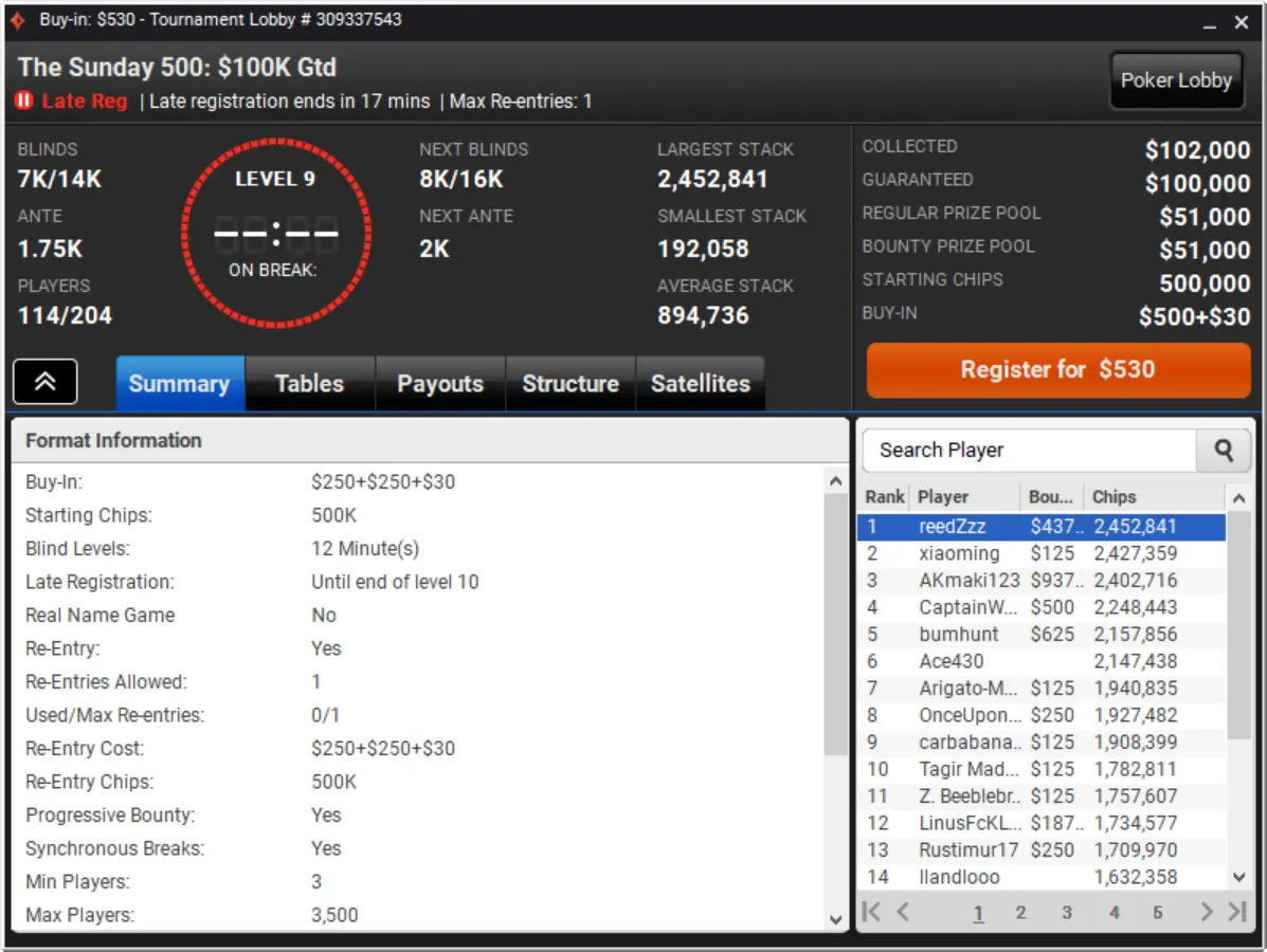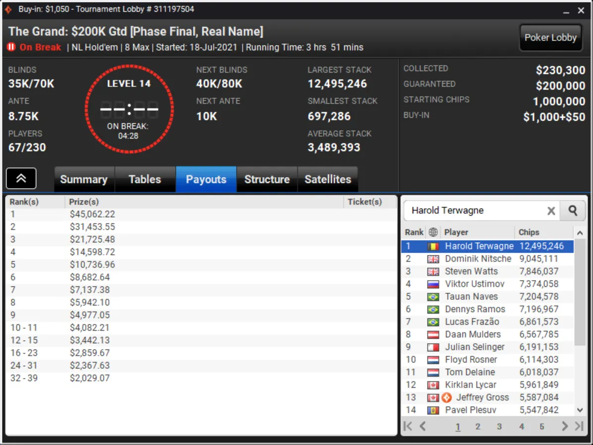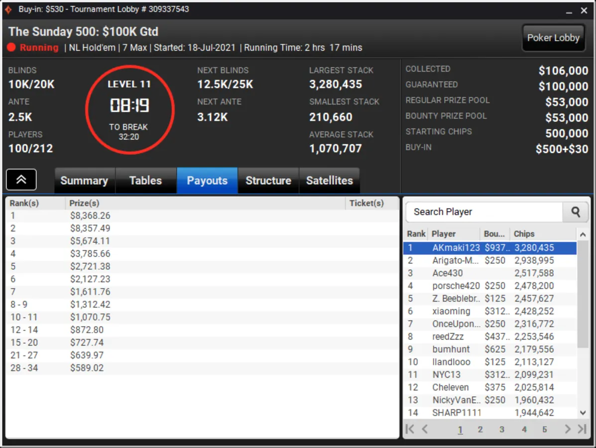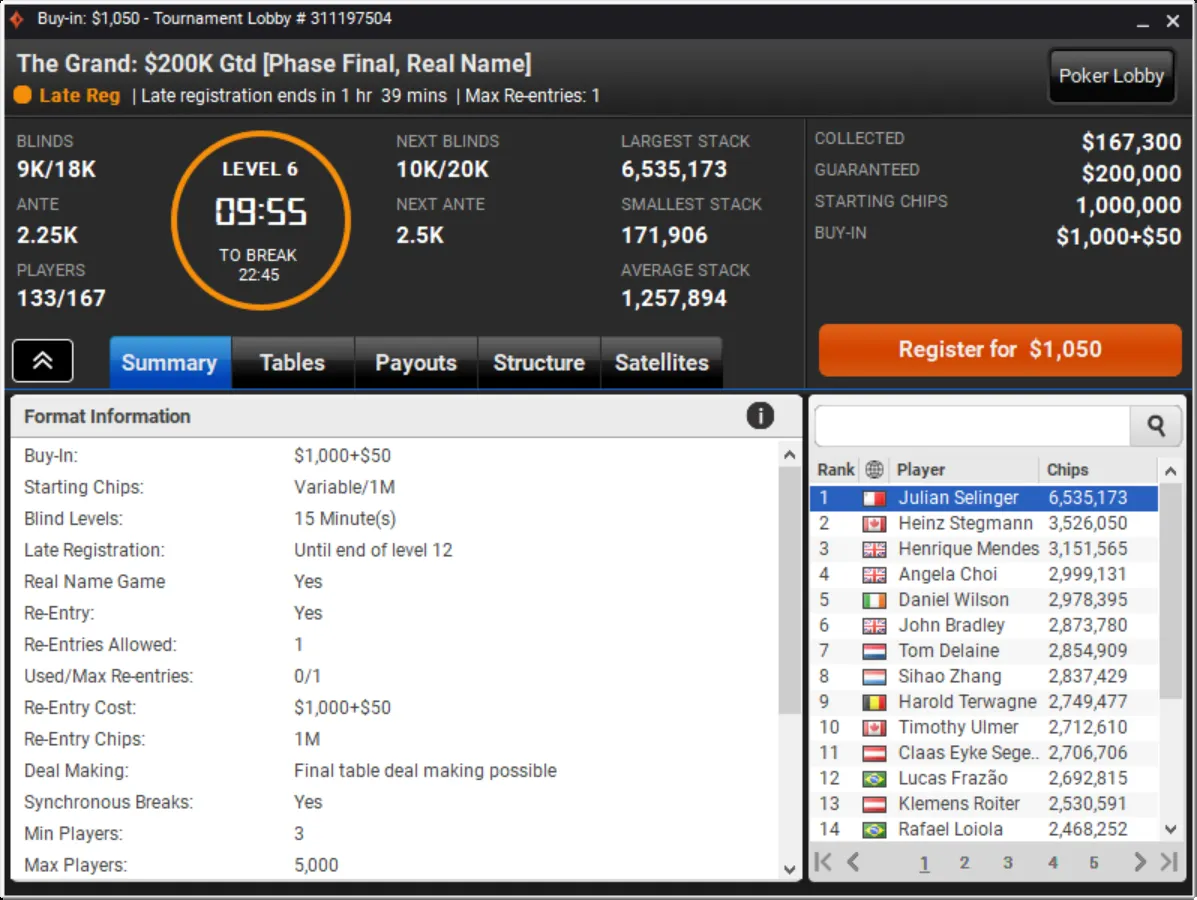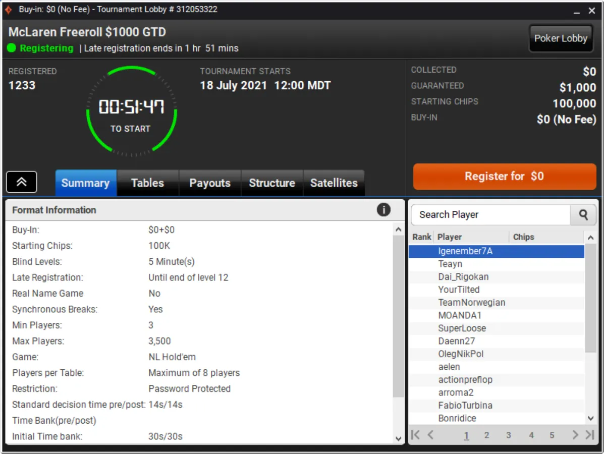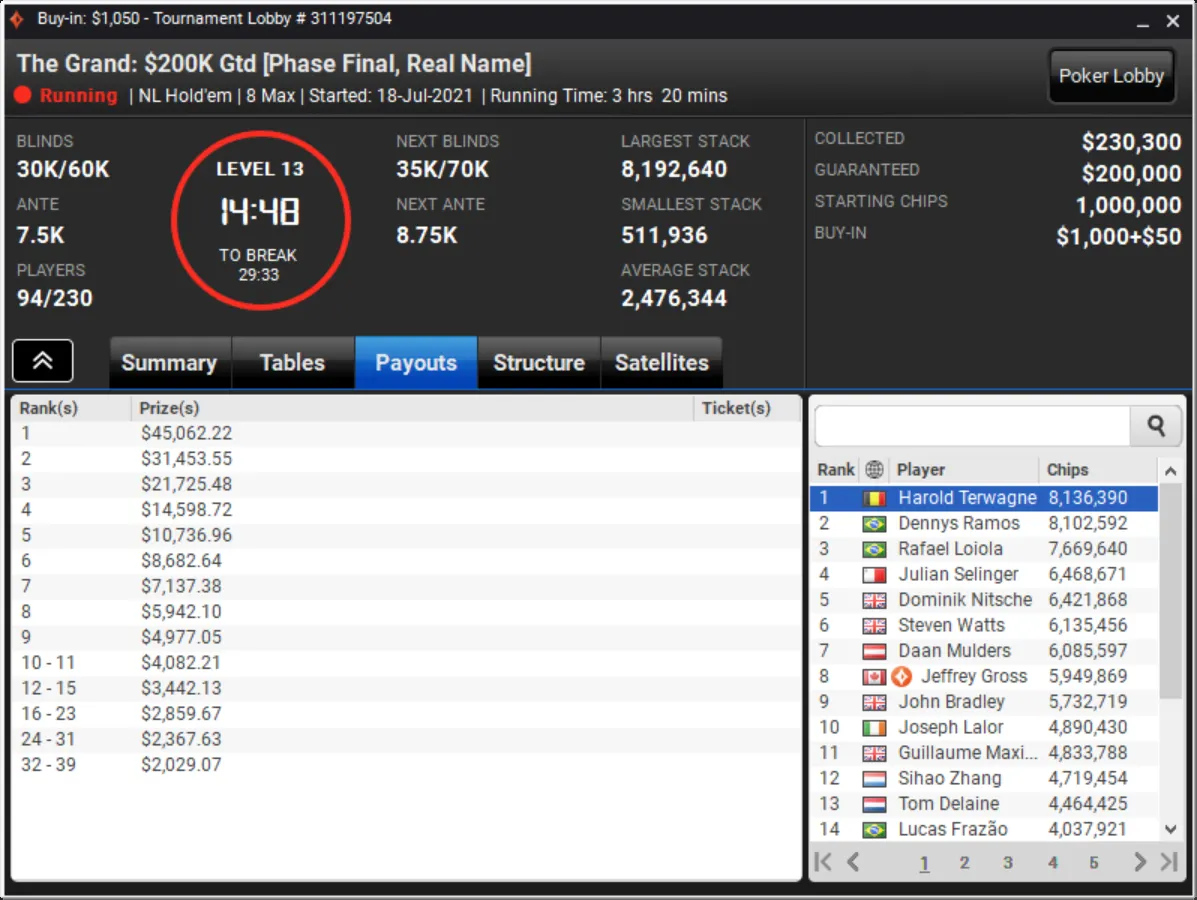 Niklas Astedt Wins The Grand for More than $45,000"Zefl0pinh0" Wins The Weekender for More Than $13,000 TotalThe Weekender Heads-up"Tagir Madzhulov" Takes Down The Sunday 500"Tagir Madzhulov" Still Leads Heads-Up at BreakThe Grand Final TableDown to 4 Left in The Sunday 500Final Table of The Sunday 500The Weekender Final TableFinal Table Bubble in The Weekender and Good Day for GrossJust 15 Left in The Weekender Final DayHarold Terwagne Leads The Grand at Break$230,000 To Play for in The GrandRegistration Closed in The Sunday 500 with $106,000 in PrizesGuarantee Surpassed in The Sunday 500The Grand Breaks Guarantee$1,000 McLaren FreerollThe Weekender Final Day UnderwayStill Time for a Shot at $1,000 Guaranteed Prize PoolThe Grand LobbyMcLaren Freeroll LobbyMcLaren RacingThe Grand Prix Knockout Series Kicks Off Todaypartypoker's Grand Prix Knockout Series