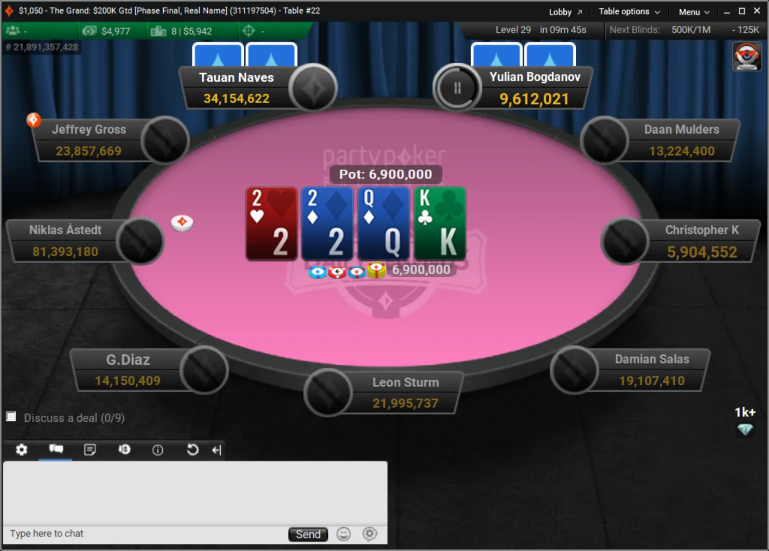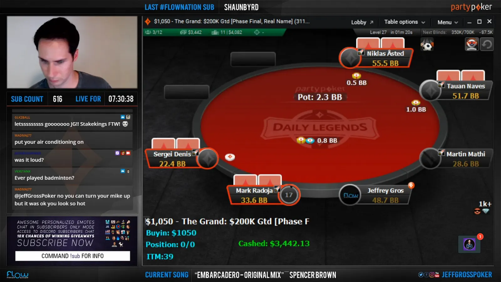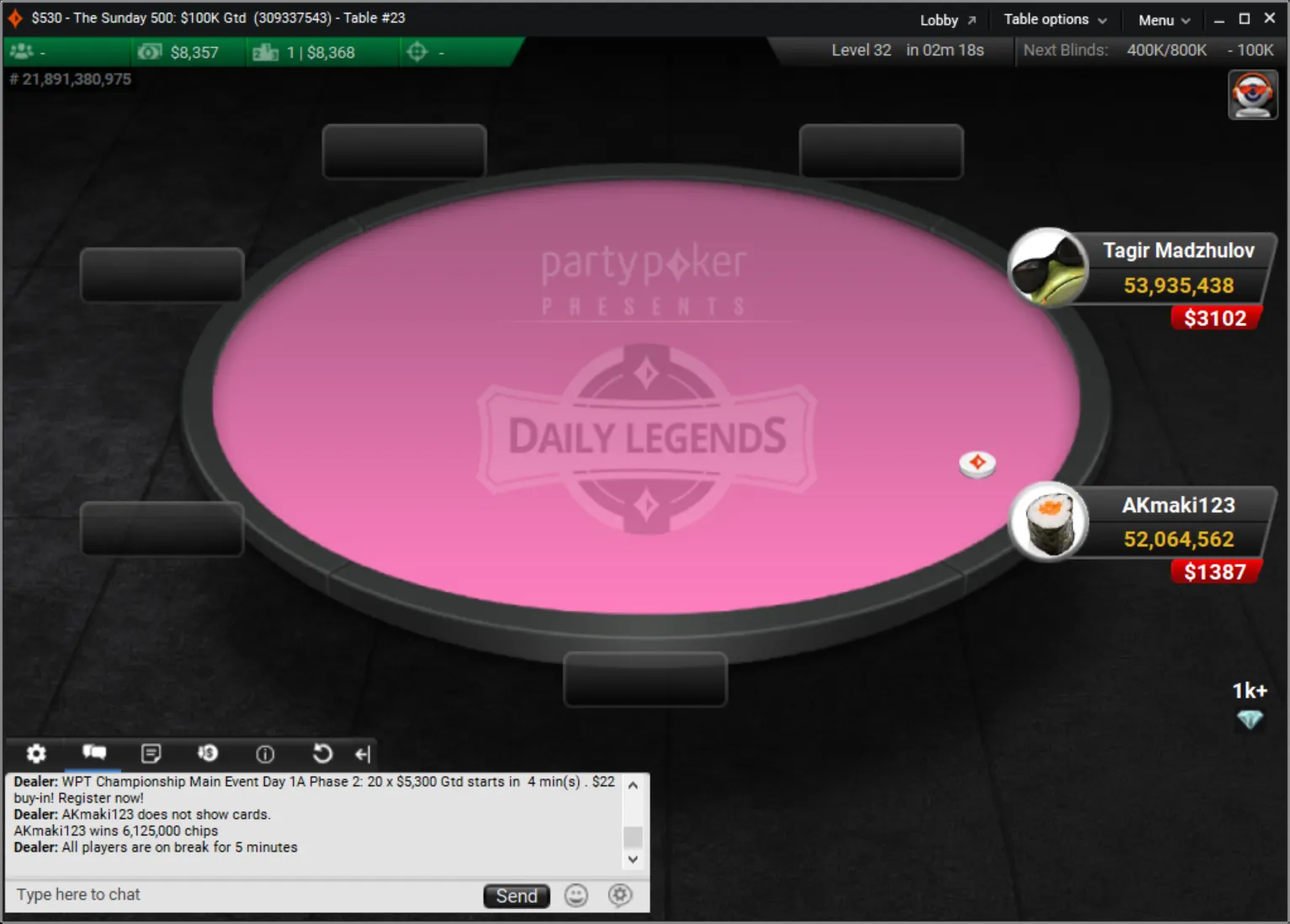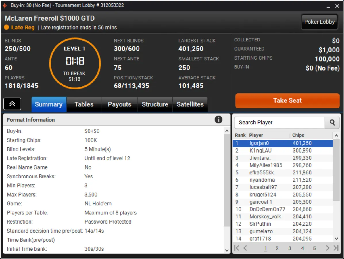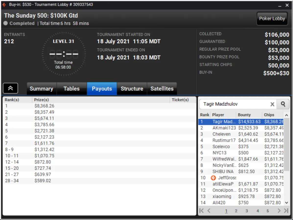 Niklas Astedt Wins The Grand for More than $45,000"Zefl0pinh0" Wins The Weekender for More Than $13,000 TotalThe Weekender Heads-up"Tagir Madzhulov" Takes Down The Sunday 500"Tagir Madzhulov" Still Leads Heads-Up at BreakThe Grand Final TableDown to 4 Left in The Sunday 500Final Table of The Sunday 500The Weekender Final TableFinal Table Bubble in The Weekender and Good Day for GrossJust 15 Left in The Weekender Final DayHarold Terwagne Leads The Grand at Break$230,000 To Play for in The GrandRegistration Closed in The Sunday 500 with $106,000 in PrizesGuarantee Surpassed in The Sunday 500The Grand Breaks Guarantee$1,000 McLaren FreerollThe Weekender Final Day UnderwayStill Time for a Shot at $1,000 Guaranteed Prize PoolThe Grand LobbyMcLaren Freeroll LobbyMcLaren RacingThe Grand Prix Knockout Series Kicks Off Todaypartypoker's Grand Prix Knockout Series