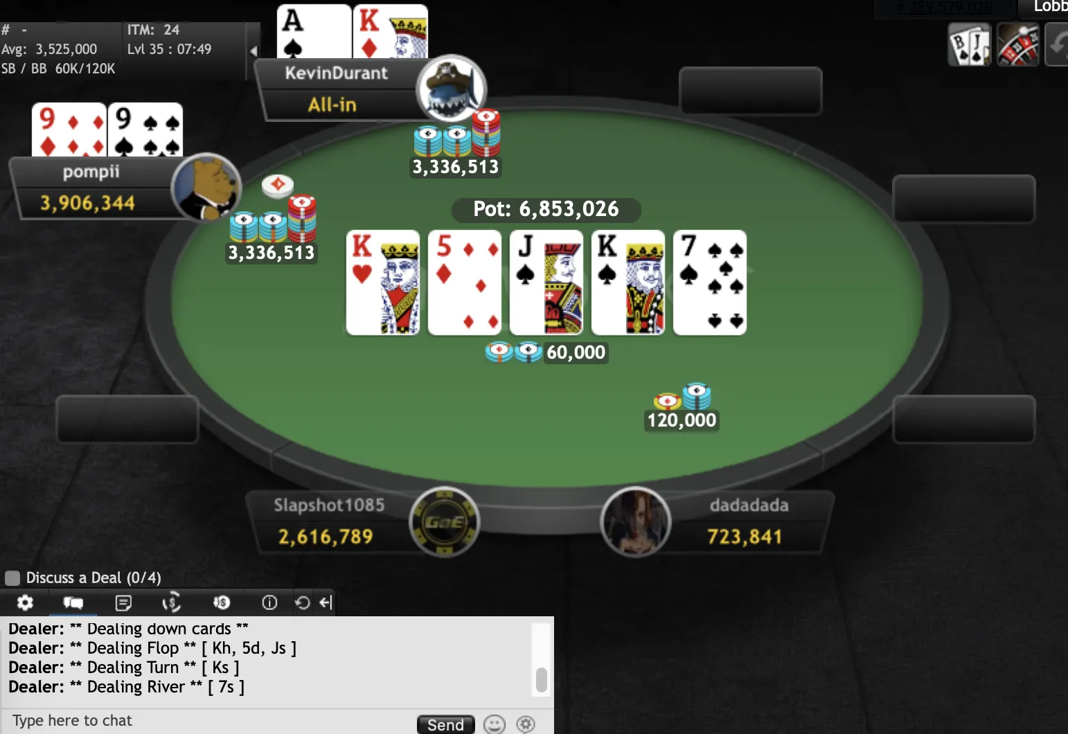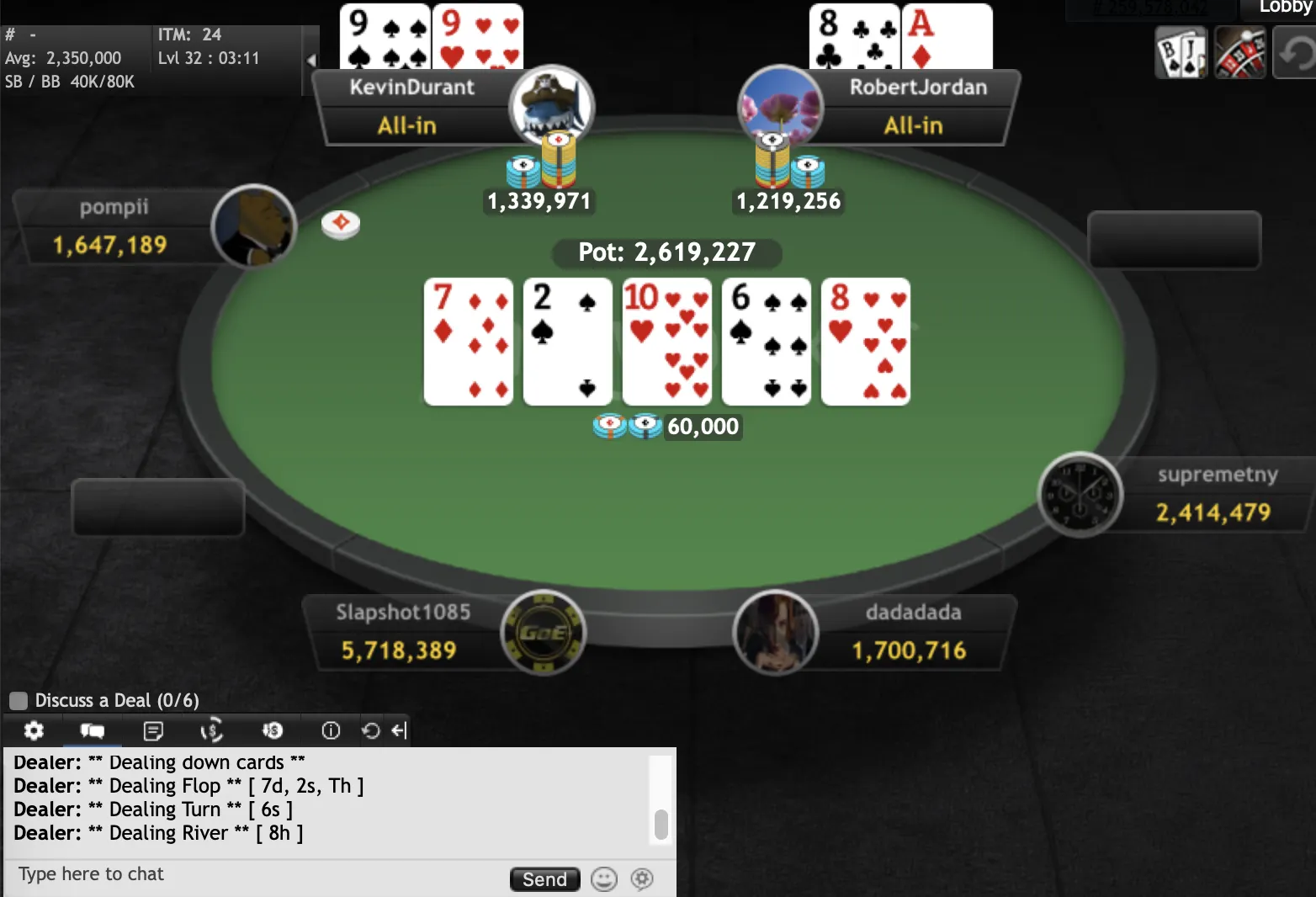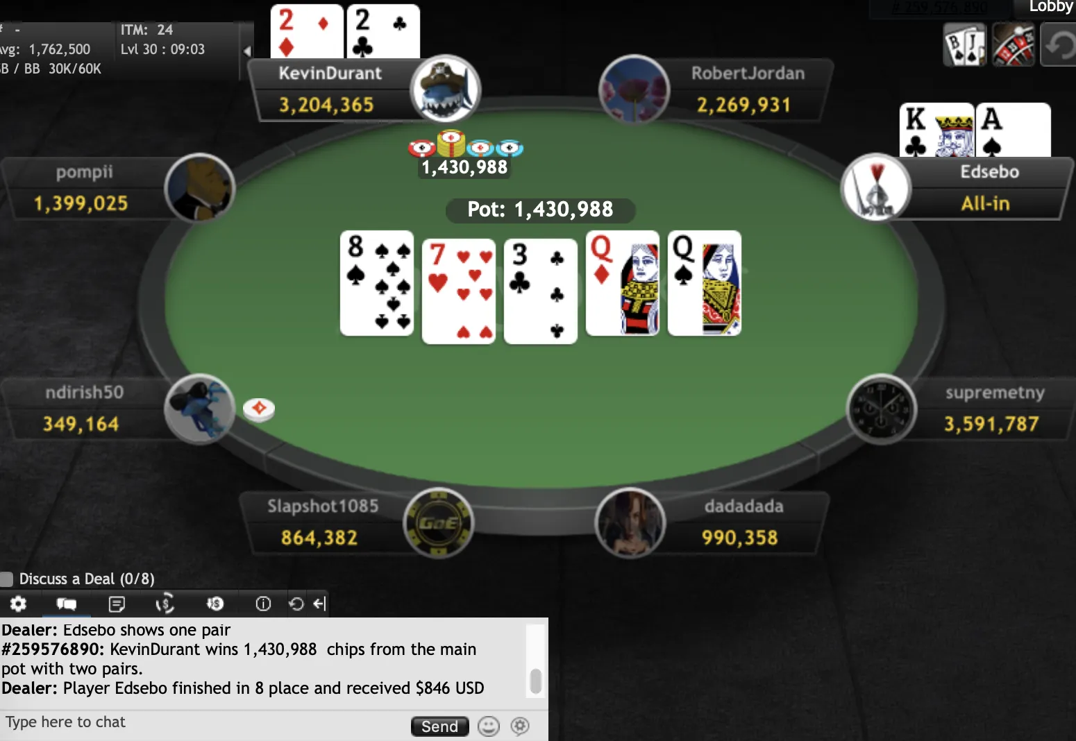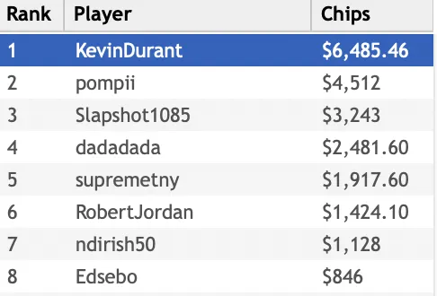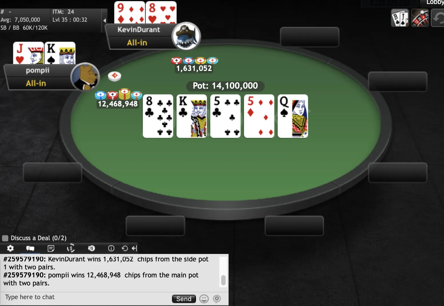 "KevinDurant""pompii" final hand"KevinDurant""KevinDurant""pompii""Slapshot1085""dadadada""KevinDurant""pompii""RobertJordan""Slapshot1085""pompii""ndirish50""Edsebo""jchimpo56""dadadada""upayformypennys""dadadada""KingofNJ""misterkk""sandman9876""pup33""xxx6395200""MT1991""pup33""mooseman1710""Earthcloud""joey1way""GogoYubari""pompii""KingofNJ""jerseyman99""dwilbs69"