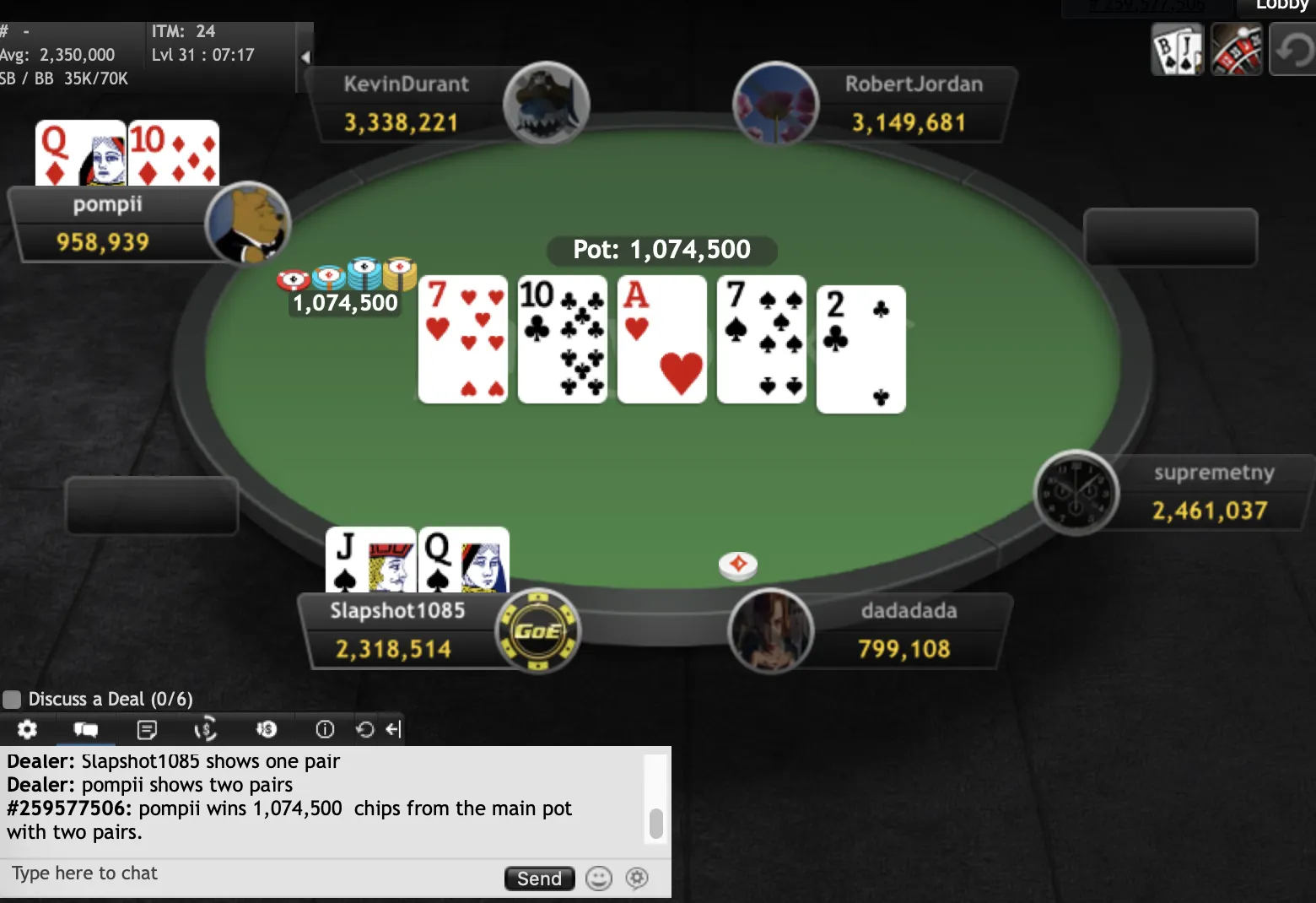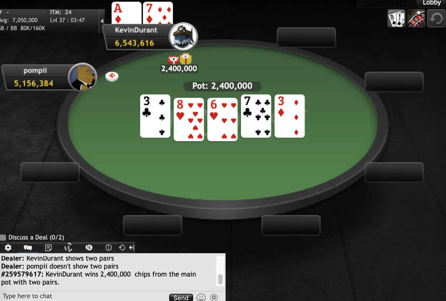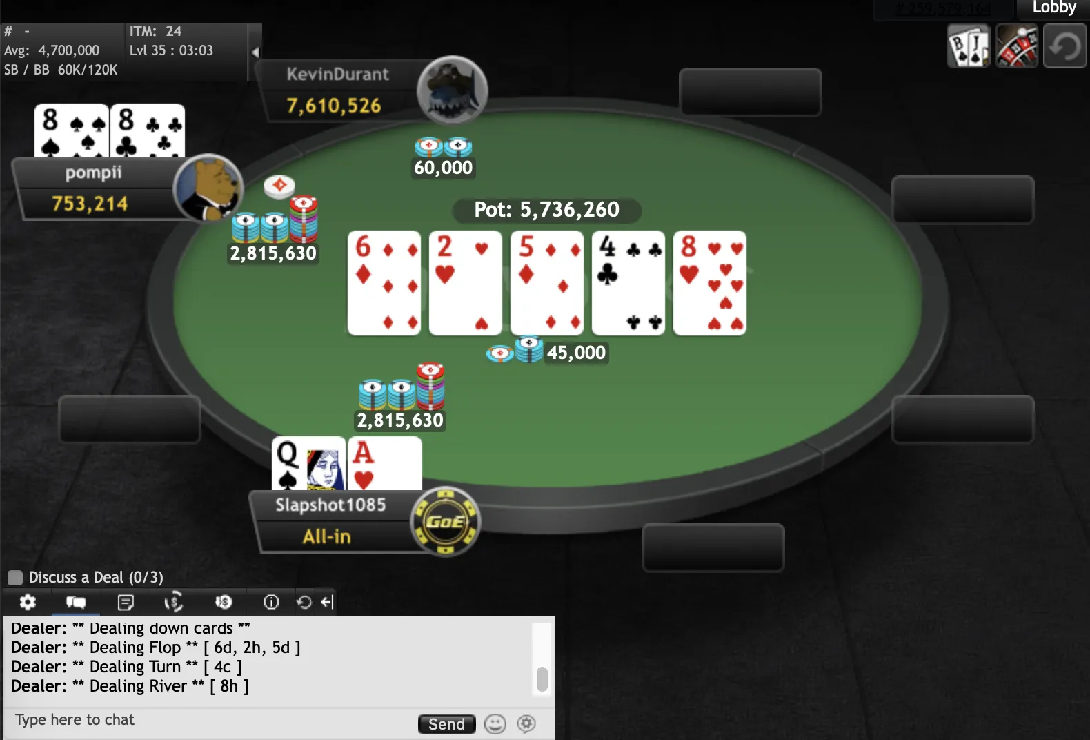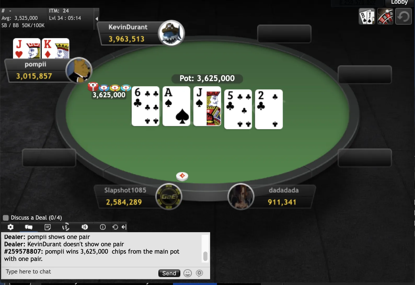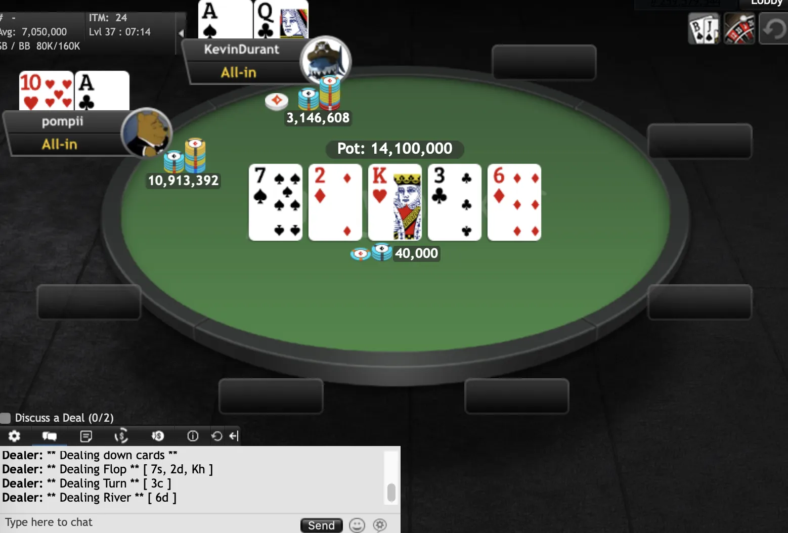 "KevinDurant""pompii" final hand"KevinDurant""KevinDurant""pompii""Slapshot1085""dadadada""KevinDurant""pompii""RobertJordan""Slapshot1085""pompii""ndirish50""Edsebo""jchimpo56""dadadada""upayformypennys""dadadada""KingofNJ""misterkk""sandman9876""pup33""xxx6395200""MT1991""pup33""mooseman1710""Earthcloud""joey1way""GogoYubari""pompii""KingofNJ""jerseyman99""dwilbs69"