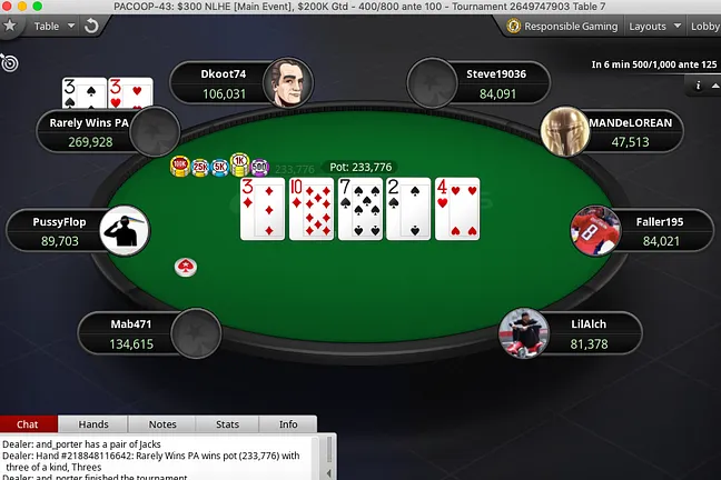 | Thursday, Oct. 1 | Event #36: $250 NLHE [PKO, Thursday Thrill], $40K GTD | 268 | $62,444 | GARYtheGiraffe | $11,676.46 |
