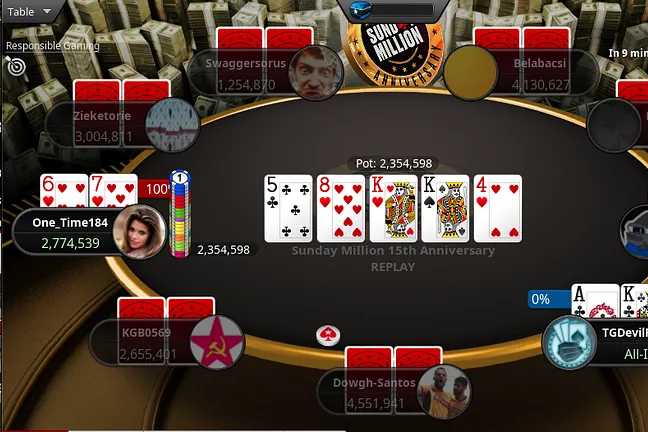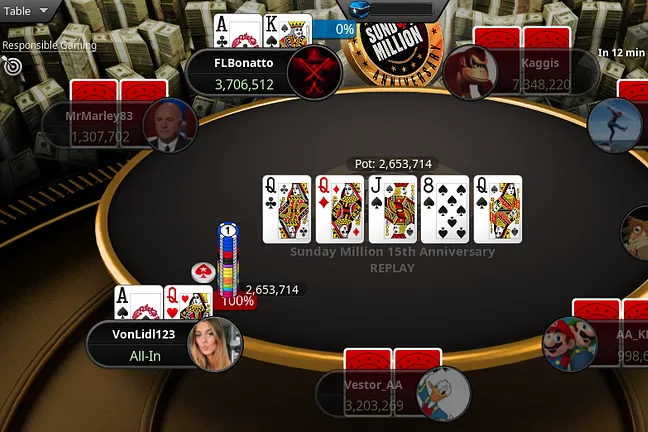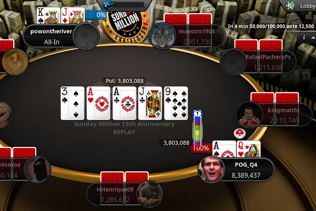 "POG_Q4" was ahead when the chips went into the pot and improved even further to trip to eliminate their opponent on the ![]()