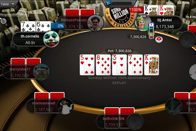 "powontheriver" opened to 150,000 from middle position and got a call from the player in the cutoff before "POG_Q4" jammed for 6,322,893 from the small blind. "powontheriver" called for 1,736,544 and the player in the cutoff folded their hand.