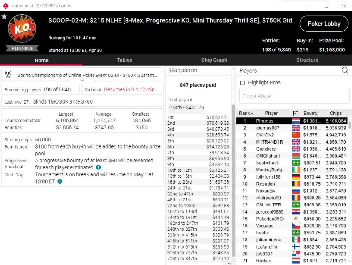 SCOOP-02-M: $215 NLHE [8-Max, PKO, Mini Thursday Thrill SE], $1M Gtd