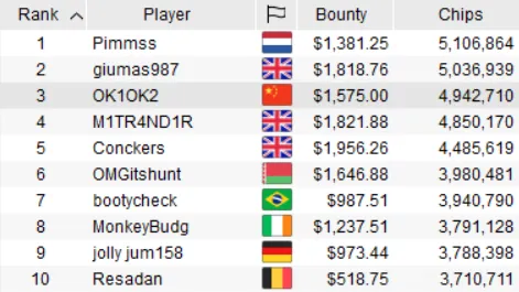SCOOP-02-M: $215 Mini Thursday Thrill Top Ten Chip Counts