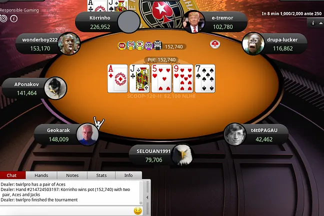 for top two pair to win the hand, and send Turmezy to the virtual rail.