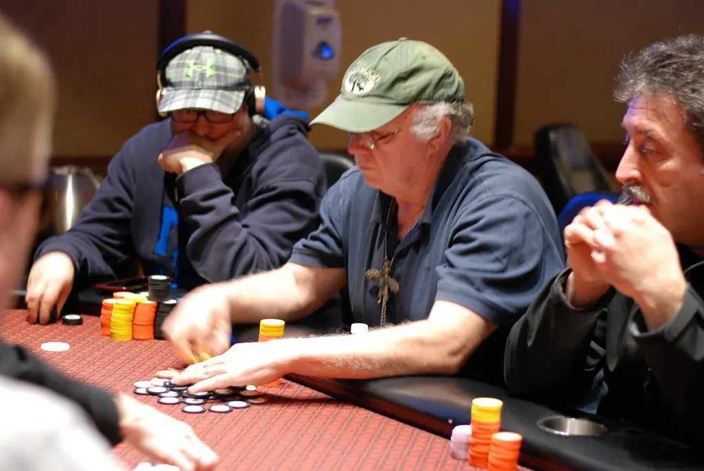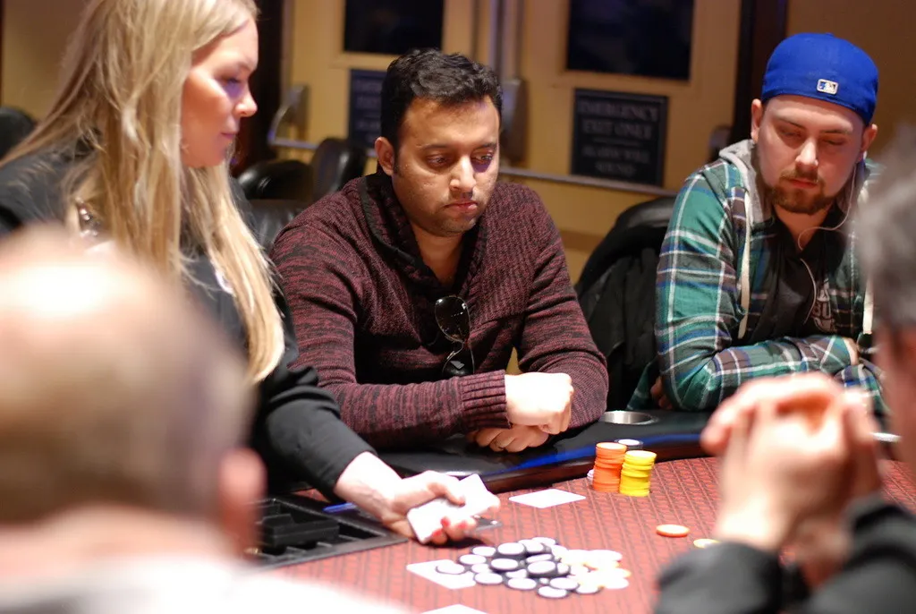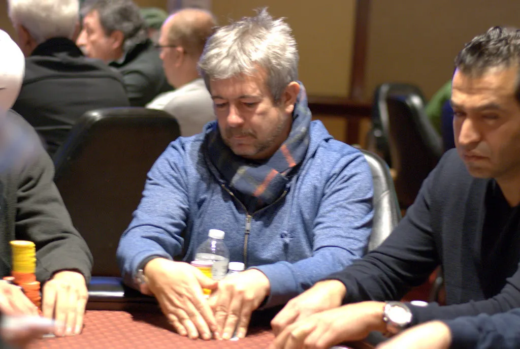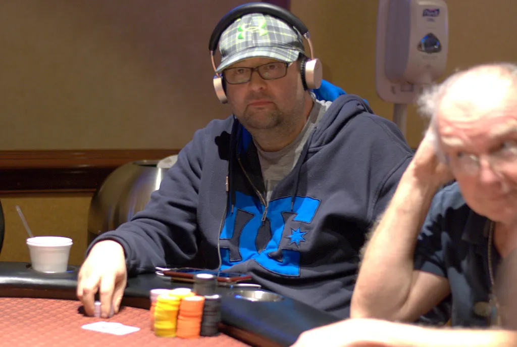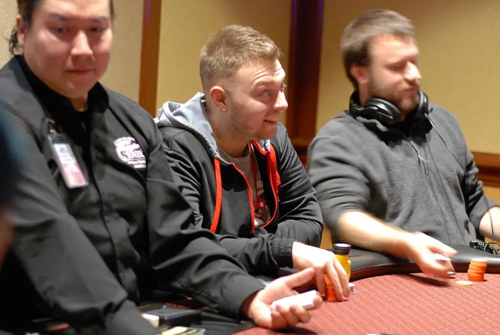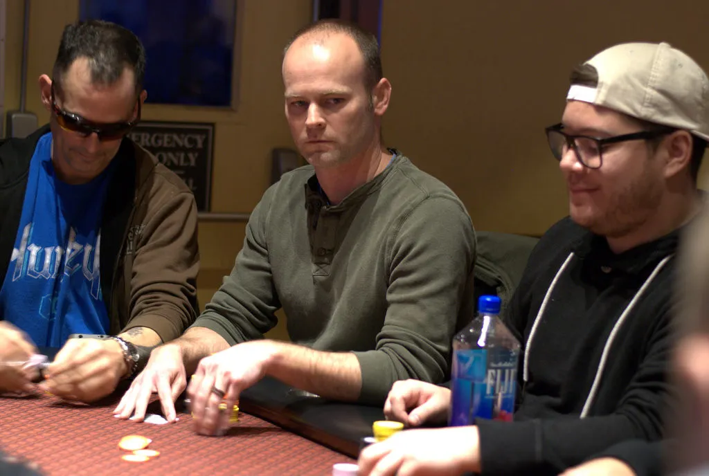 Scott Dabarno, Curtis Myers and Alan Findlay were all in before the flop with Findlay having both of his opponents covered by a lot of chips.