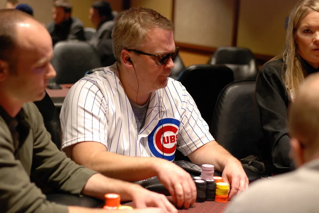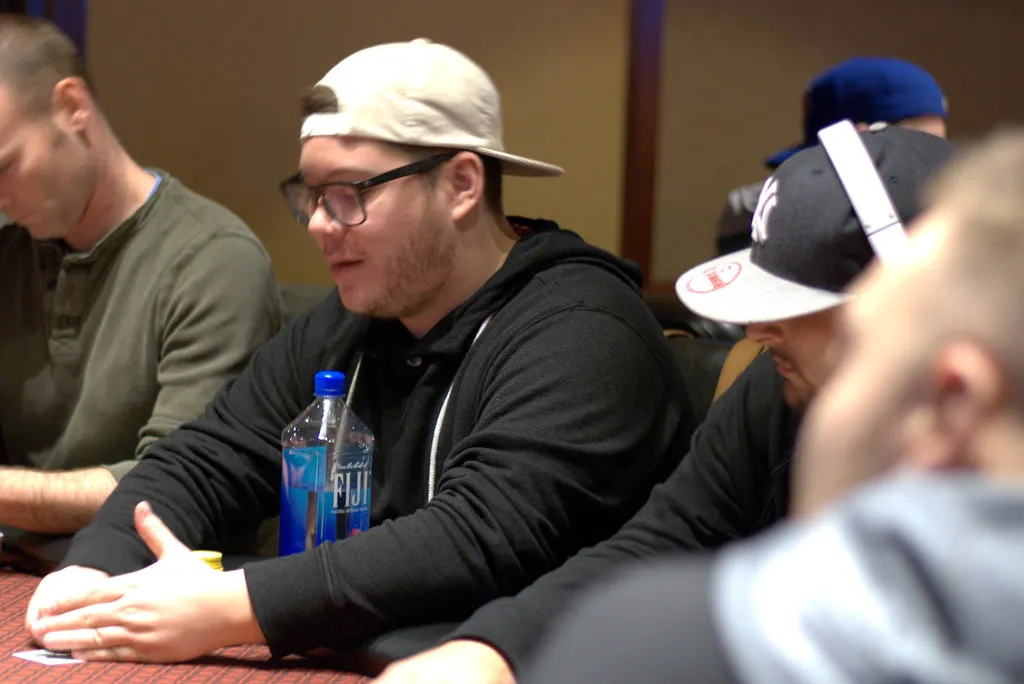 The remaining 32 players are on a 30-minute dinner break. Rob Greene leads with 245,000.