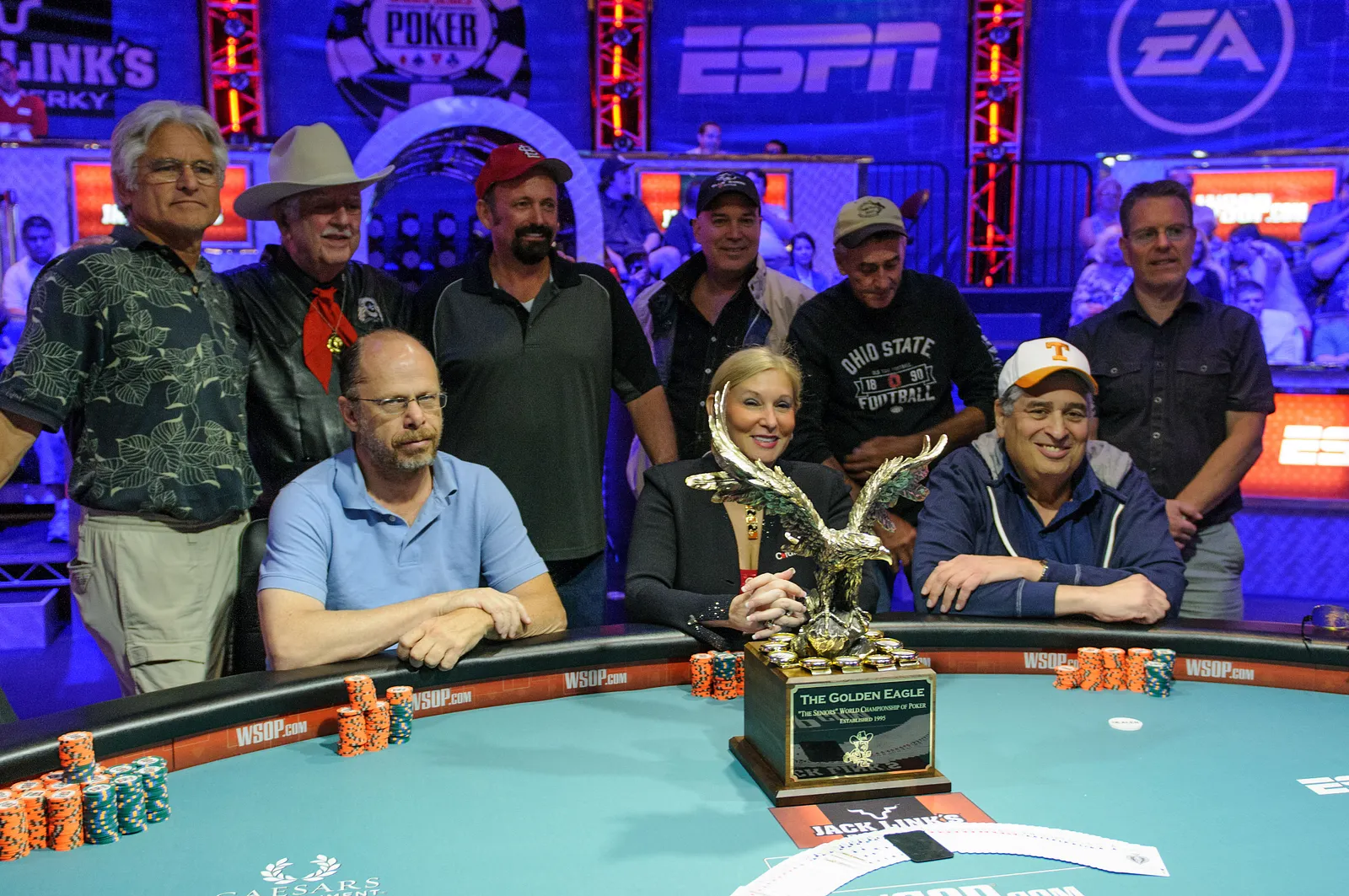 Dennis PhillipsStuart SpearThe Golden Eagle TrophyThe Golden Eagle TrophyAllyn Jaffrey ShulmanHoyt CorkinsHoyt CorkinsAllyn Jaffrey ShulmanDennis PhillipsWilliam StablerWilliam StablerHoyt CorkinsAllyn Jaffrey ShulmanAllyn Jaffrey ShulmanWilliam ThomsonCarolyn TullochDennis PhillipsWilliam StablerWilliam StablerBob PhelpsHoyt CorkinsMartin FitzmauriceHarold LilieStuart SpearHarold LilieHoyt CorkinsOklahoma Johnny announcing "shuffle up and deal"Final TableOklahoma Johnny's gift to final table playersRobbie Thompson about to make player introductionsStuart Spear, Martin FitzmauriceFinal TableFinal TableStuart SpearCarolyn TullochDennis PhillipsWilliam StablerWilliam StablerBob PhelpsBob PhelpsHoyt CorkinsHoyt CorkinsHoyt CorkinsStuart SpearMartin FitzmauriceHarold LilieA celebratory hug from Jan Fisher after making the final tableWilliam ThomsonWilliam ThomsonContinued interest as the players in Event 29 play down to one tableThe Golden Eagle TrophyLast two tablesLast two tablesThe coveted "Golden Eagle" trophy awarded to the winner of the Seniors EventThe Seniors Trophy past winnersThe rail is watching all the action of the last couple of tables in the Seniors EventSeniors Event Day 3 has attracted a large crowdThe crowd is three deep watching Day 3 of the Seniors EventClifton GreenClifton GreenClifton GreenWilliam StablerLast three tablesLast three tablesLast three tablesLoyal GwathmeyRobert KaplanRobert KaplanCarolyn TullochCarolyn TullochMartin FitzmauriceMartin FitzmauriceMartin FitzmauriceRadwan KhuriRoberto RodriguesRoberto RodriguesGregory MaynardGregory MaynardAllyn Jaffrey Shulman, Barry ShulmanRodney ClaridaRodney Clarida