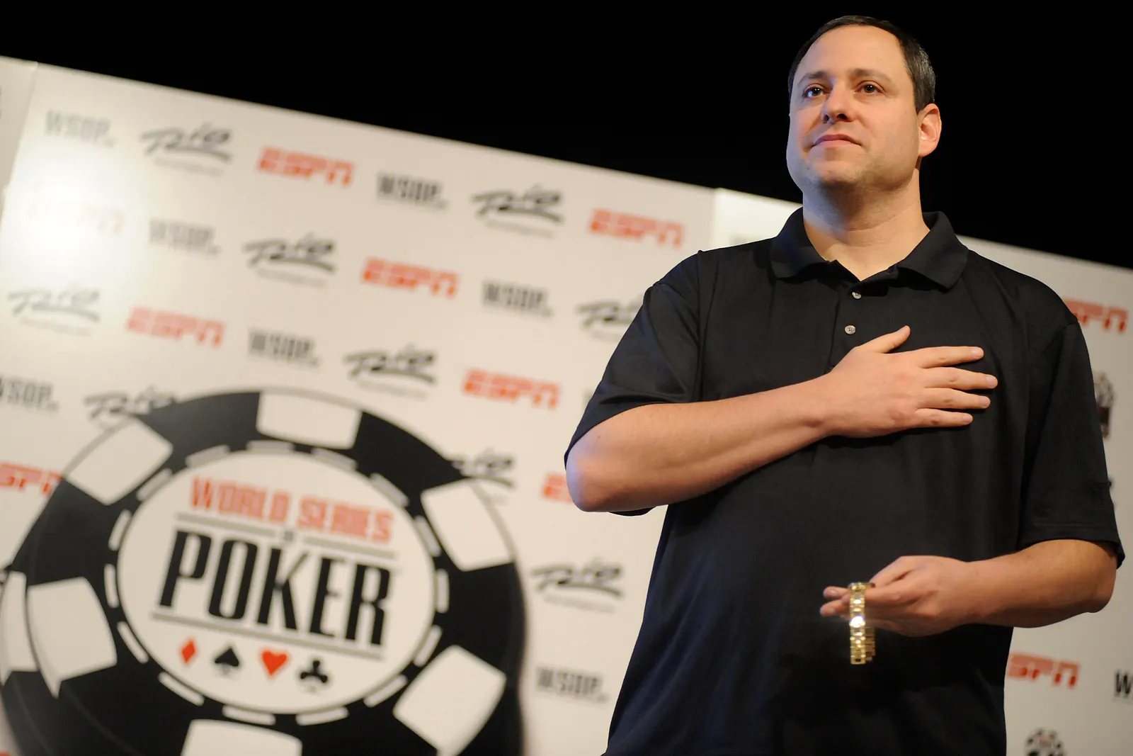 David Baker recieving his World Seies Of Poker bracelet last year.