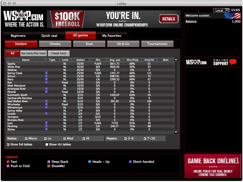 WSOP Online NV Support